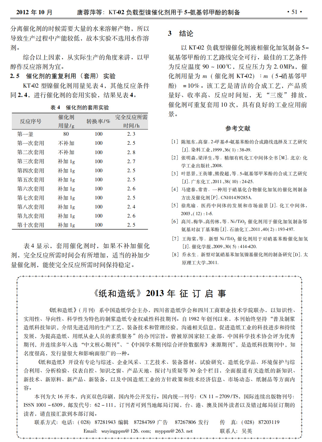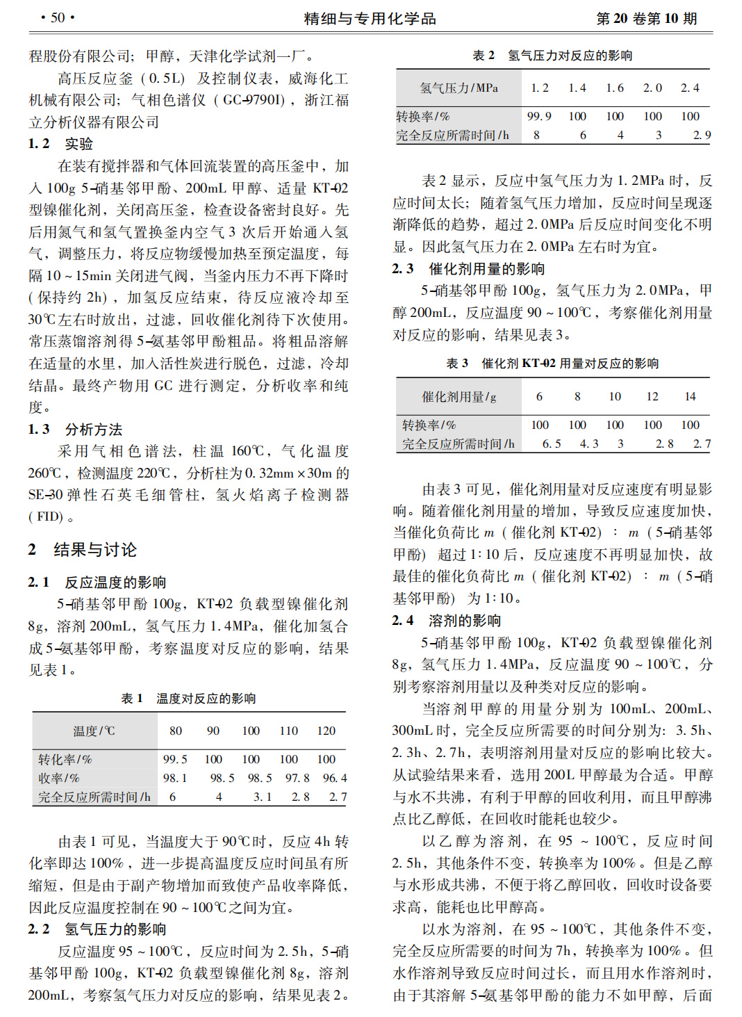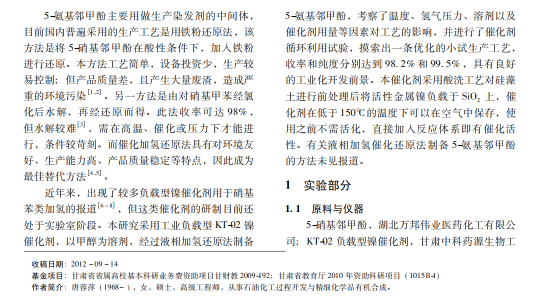 KT-02 負(fù)載型鎳催化劑用于 5-氨基 鄰甲酚的制備